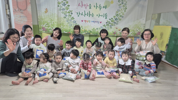 이번 나눔은 설 명절을 앞두고 행복한어린이집 원아와 학부모, 교직원들이 이웃을 사랑하는 마음을 모아 마련되었으며, 쌀 43㎏을 전달하며 지역사회에 훈훈한 온기를 더했다.