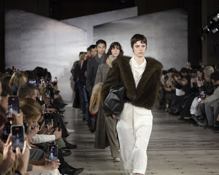 | ▲ 지난 22일(현지 시간), 프랑스 파리 ‘국립 예술 공예원’에서 진행한 시스템·시스템옴므 2026년 가을·겨울(F/W) 시즌 단독 프레젠테이션에서 모델들이 런웨이를 걷고 있는 모습.(사진=한섬 제공) |
