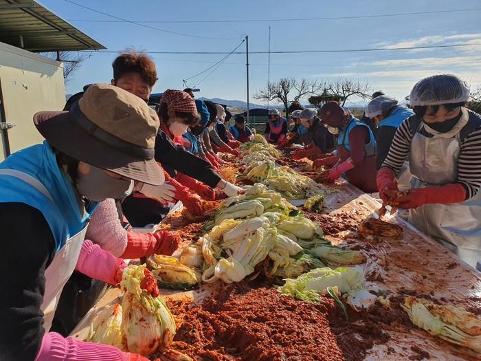 전남 보성군 득량면 희망드림협의체와 면 여성자원봉사회가 2일 겨울 맞이 사랑의 김장 나눔 행사를 열었다. 이날 봉사자들은 배추 500포기로 김장김치를 담가 지역내 저소득 노인, 장애인 등 취약계층 이웃 170가구에 전달했다. 사진은 봉사자들이 김장김치를 만들고 있는 모습. (사진제공=보성군청)