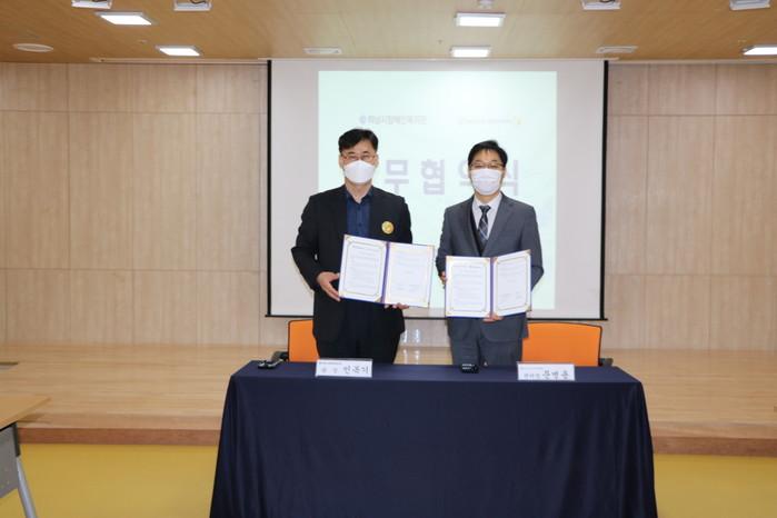 경기 하남시장애인복지관은 22일 하남시건강가정다문화가족지원센터와 장애인가족을 위한 복지서비스를 지원하고자 업무협약을 체결했다. 이날 협약에 따라 두 기관은 장애인 가족을 위한 사업정보와 서비스를 공유하고 전문적인 지원을 할 예정이다. 사진은 협약식에서 관계자들이 기념촬영을 하는 모습. (사진제공=하남시청)