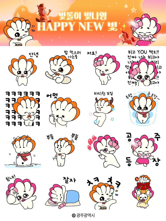 광주시는 연말연시 시민들과 더욱 친근하게 소통하기 위해 공식 카카오톡 채널(채널명: 광주광역시)을 통해 이모티콘 16종을 선착순 5만명에게 제공한다.