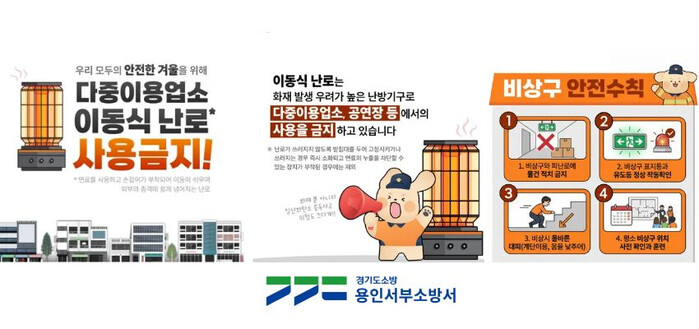 [용인=오왕석 기자] 용인서부소방서는 겨울철 한파로 난방 수요가 증가하는 시기를 맞아 카페·음식점·독서실·사우나 등 다중이용업소에서의 이동식 난로 사용 금지. 피난로·비상구 확보를 통한 안전한 대피 환경 조성을 위한 협조를 당부했다.