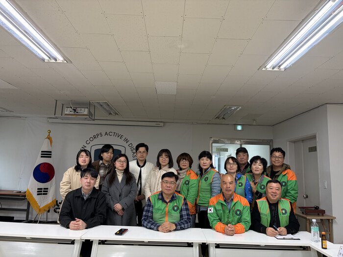 | ▲ 화성특례시 보건소 관계자와 자율방재단이 방제 관련 회의를 마친 후 기념 촬영을 하고 있다 /사진제공=화성특례시 |