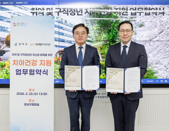 구는 25일 구청에서 연세힐치과의원(대표원장 정현준)과 ‘취약 및 구직청년 치아건강 지원을 위한 업무협약’을 체결했다.
