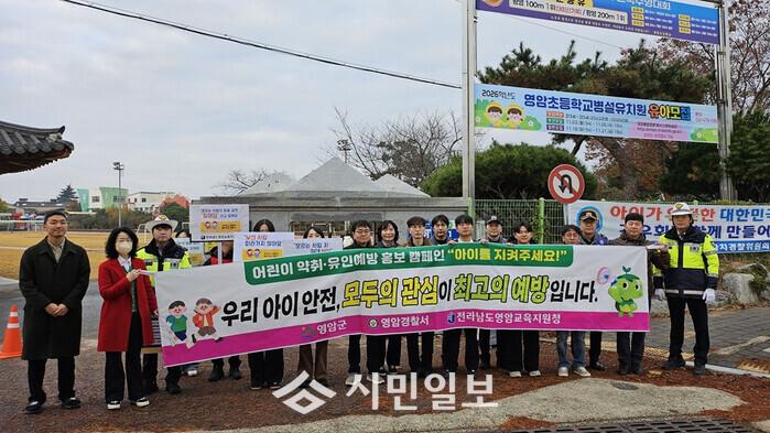 나아가 홍보 현수막과 피켓으로 학부모 등 영암군민에게 어린이 유인 행위의 심각성과 신고 요령을 알렸다.