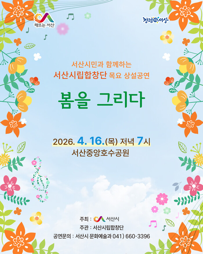 한편 서산시립합창단은 이번 공연을 시작으로 오는 5월, 9월, 10월에 상설공연을 개최할 계획이다.