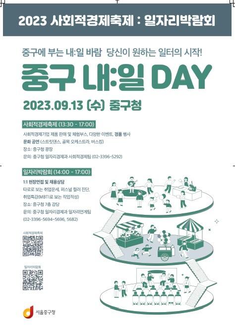 [시민일보 = 여영준 기자] 중구(구청장 김길성)가 오는 13일 구청에서 일자리박람회와 사회적경제축제 ‘내:일 바람’을 개최해 지역과 주민이 상생할 수 있는 일자리 정보를 한데 모아 제공한다.