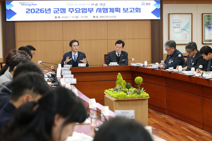 이번 보고회에서는 영암군 26개 부서장 등이 참석한 가운데, 국고 건의 및 공모사업 22건, 주요 업무 472건으로 이뤄진 총 494건의 사업 공유와 분야별 추진 전략 논의가 이뤄졌다.