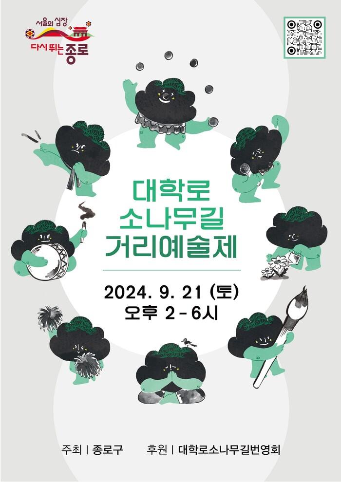 [시민일보 = 이대우 기자] 서울 종로구(구청장 정문헌)가 오는 21일 오후 2~6시 주말 차 없는 거리로 운영 중인 ‘대학로 소나무길’ 일대에서 「2024 대학로 소나무길 거리예술제」를 개최한다.