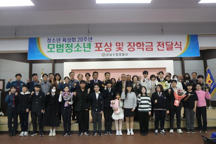 이날 행사에는 박영수 성남수정경찰서장, 이흥복 청소년육성회 회장과 회원 등 70명이 참석한 가운데, 청소년육성회 위원 2명에게 경찰서장 감사장을, 모범청소년 3명에게 경찰서장 표창을 수여하고, 특히 관내 초·중·고등학교에서 추천받은 총 20명의 모범청소년에게 1인 30만원씩 총 600만원의 장학금을 전달했다.