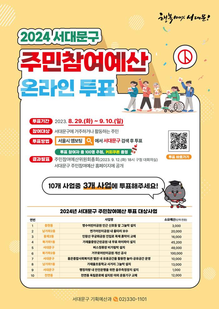 | ▲ 2024 서대문구 ‘주민참여예산사업 선정을 위한 온라인 투표’ 안내문. (사진=서대문구청 제공) |