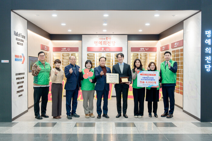 경기 오산시가 지난 27일 지역내 취약계층 노인의 구강건강 지원을 위해 성인용 칫솔 4000개(1400만원 상당)를 기부한 서울버팀치과의원에 대해 명예의 전당 등재식 및 감사패 전달식을 개최했다. 사진은 전달식에서 이권재 시장(가운데)이 관계자들과 기념 촬영을 하는 모습. (사진=오산시청 제공)