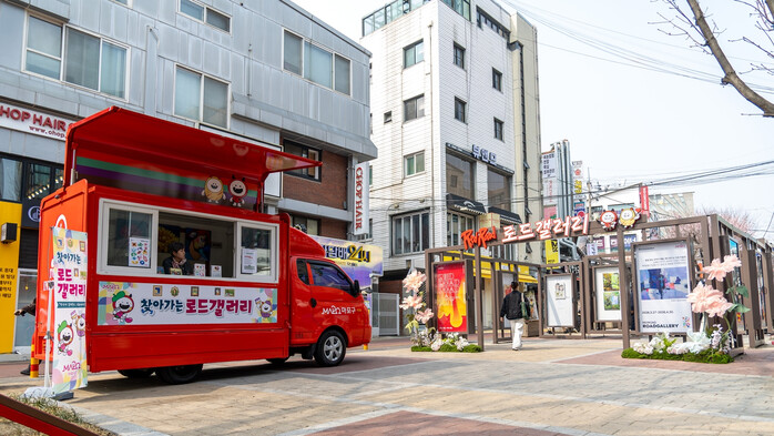 레드로드 로드갤러리는 2023년 조성된 개방형 야외 전시공간으로, 보행 동선을 따라 누구나 자유롭게 작품을 감상할 수 있어 기존 실내 전시보다 접근성을 높인 것이 특징이다.