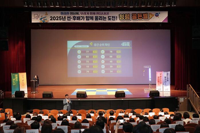 | ▲ 감사관실-지난 2025년 9월 3일 시청 온누리에서 신상진 성남시장이 성남시 공직자들이 참여하는 도전!청렴 골든벨 행사에서 인사말을 하고 있다. |