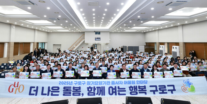 | ▲ ‘2025년 구로구 장기요양기관 종사자 어울림 한마당’ 참석자들이 기념촬영을 하고 있다. (사진=구로구청 제공) |