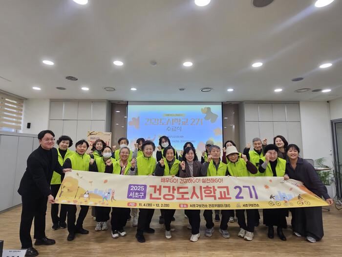 [시민일보 = 박소진 기자] 서초구(구청장 전성수)는 주민들의 건강 역량을 강화하고 실천 중심의 건강 리더를 양성하는 ‘제2기 건강도시학교’ 수료식을 지난 2일 서초구 보건소 건강키움터에서 열었다고 밝혔다.