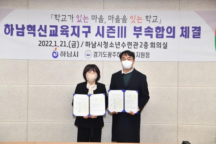 [하남=전용원 기자] 경기 하남시는 광주하남교육지원청과 올해 하남혁신교육지구 시즌Ⅲ를 추진하는 부속합의를 체결했다고 24일 밝혔다.