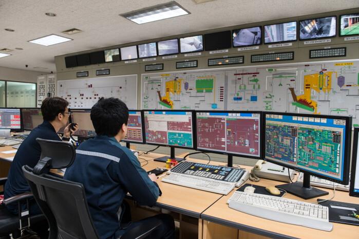 | 인천환경공단 직원들이 중앙제어실에서 감독하고 있다. [사진=인천환경공단] |