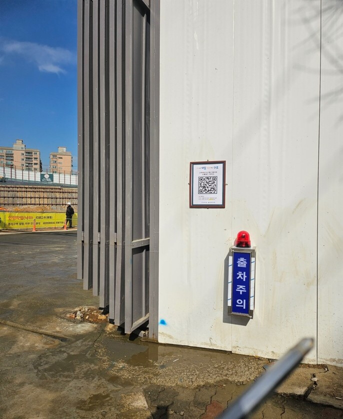 | ▲ 고척4주택재개발정비사업(고척 푸르지오 힐스테이트) 공사 현장 출입구에 부착된 공사 정보 안내 큐알(QR)코드 모습. (사진=구로구청 제공) |