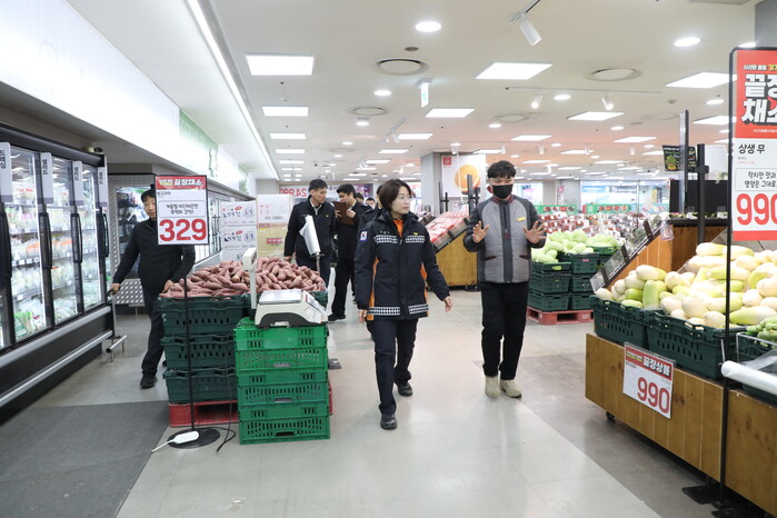먼저 마트 측의 현장 애로사항을 청취하고, 구청과 함께 안전과 지역경제가 상생할 수 있는 협력 방안에 대해 논의했다. 이어 소방안전관리업무 이행 실태를 비롯해 다중이용업소 관리 상태, 소방시설 작동 여부, 피난·방화시설 유지관리 상태 등에 대한 화재안전조사가 실시됐다.