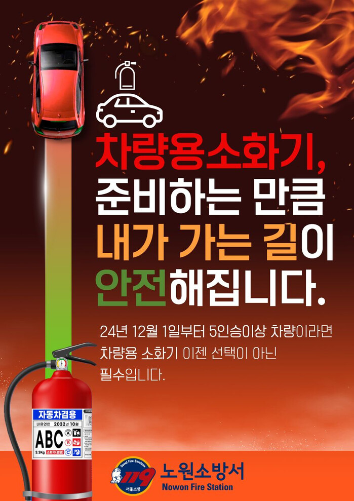 | ▲ 차량용 소화기 비치 포스터. (사진=노원소방서 제공) |