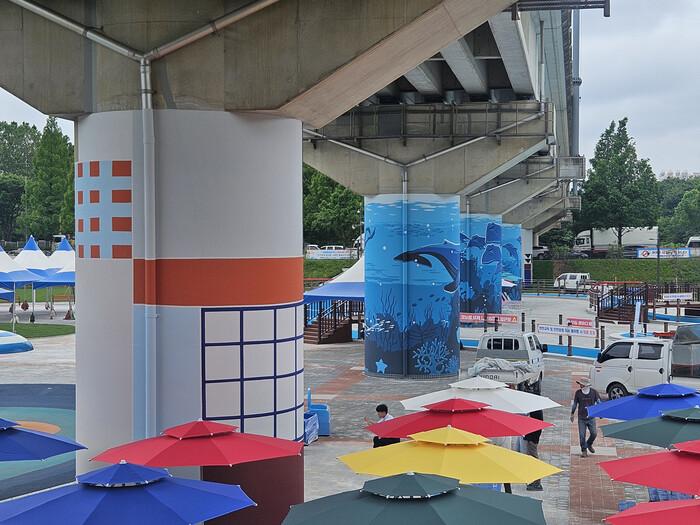 또한, 남동 물빛놀이터 개장에 맞춰 물놀이장에 있는 수인선 하부공간의 칙칙한 분위기의 교각에 시원한 바다 느낌의 벽화를 조성하고 포토존을 설치했다.