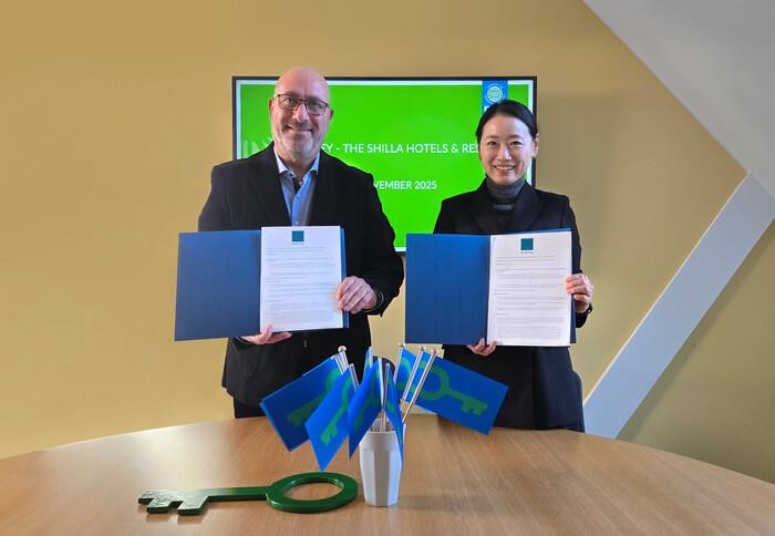 지난 17일 덴마크 코펜하겐에 위치한 환경교육재단 본부에서 진행된 ‘호텔신라–환경교육재단 간 그린키 인증 업무협약식’에는 신라호텔 이주영 마케팅 그룹장, 환경교육제단 다니엘 셰퍼(Daniel Schaffer) 대표 등 주요 관계자들이 참석했다.