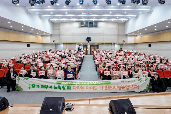 경기 오산시가 19일 시청 대회의실에서 ‘제5회 2025년 아동학대 예방의 날 기념행사’를 시민들의 큰 호응 속에 성공적으로 개최했다. 사진은 기념식에서 이권재 시장이 참석자들과 기념 촬영을 하는 모습. (사진=오산시청 제공)