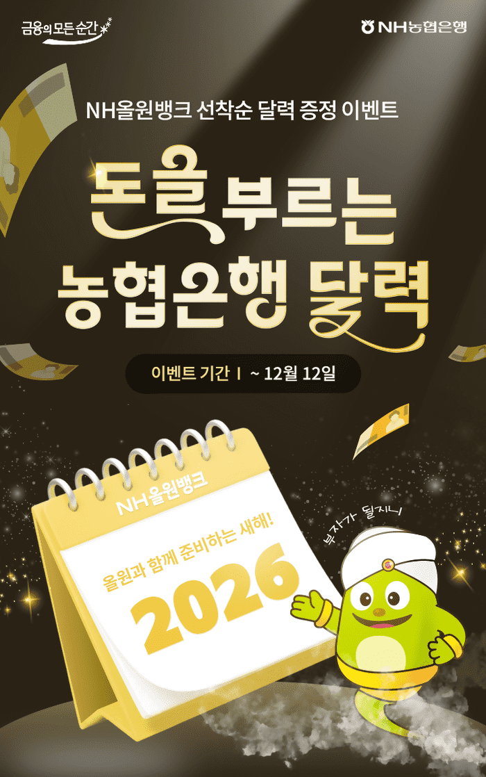 농협은행 관계자는 “새해의 풍요와 행운을 기원하는 마음을 담아 달력 증정 이벤트를 준비했다”며, “NH올원뱅크의 다양한 금융 서비스와 함께 뜻깊은 2026년을 맞이하시길 바란다”고 말했다.