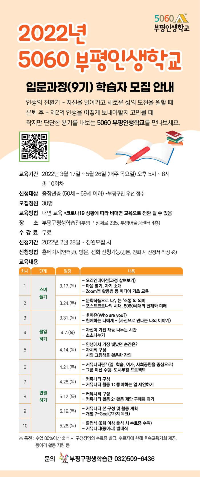 | ▲ 5060 부평인생학교 수강생 모집 안내문. (인천 부평구청) |