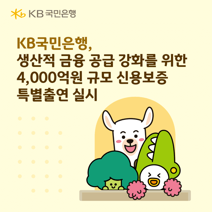 KB국민은행은 오는 5일부터 총 140억원(신·기보 특별 출연금 각 50억원, 보증료 지원금 각 20억원)의 출연을 통해, 협약 보증서를 담보로 약 4000억원 규모의 대출을 지원한다.