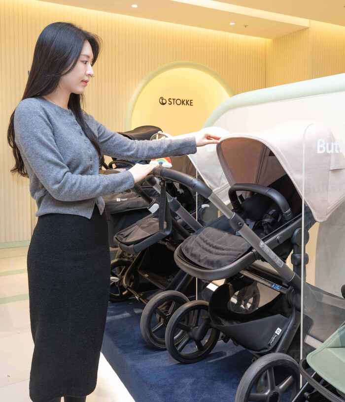 | ▲ 경기 성남시 분당구에 위치한 현대백화점 판교점 4층 에뜨와 매장을 방문한 고객이 유모차 상품을 살펴보고 있는 모습. (사진=현대백화점 제공) |