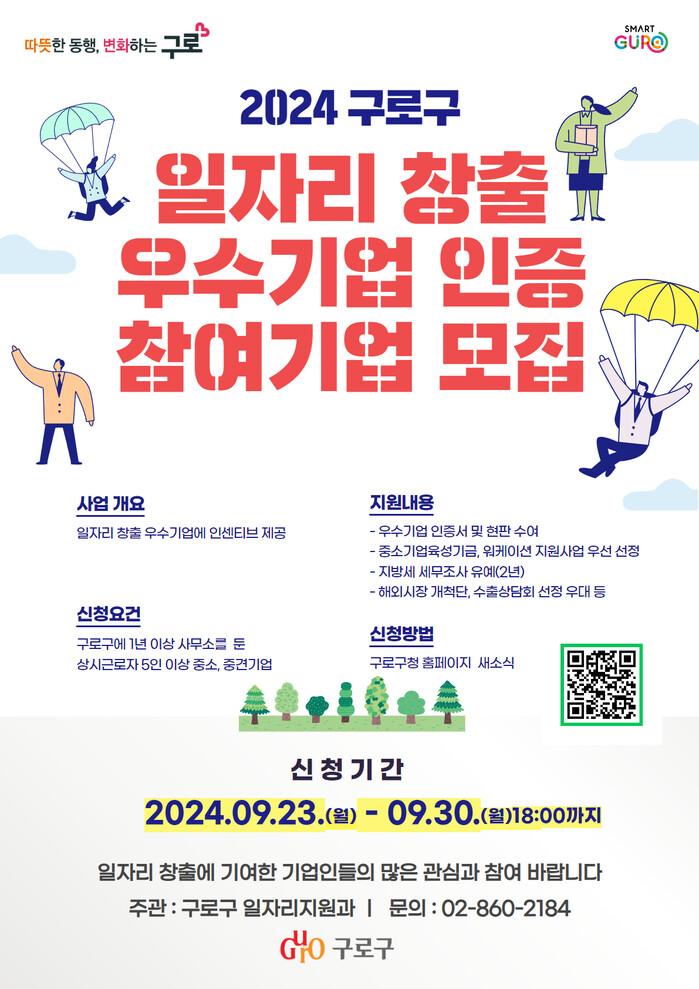| ▲ 구로구, 2024년 일자리 창출 우수기업 인증 신청접수 홍보 안내문. (사진=구로구청 제공) |