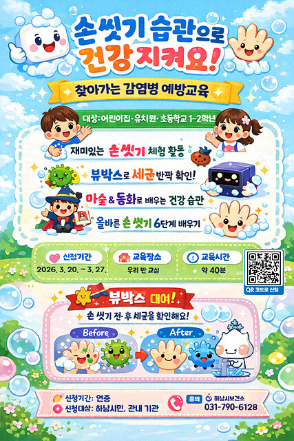 박강용 하남시보건소장은 “개인의 올바른 건강예절 형성은 감염병 질환 감소 및 지역사회 건강 증진에 중요한 역할을 한다”고 강조하며 “앞으로도 다양한 체험형 교육을 통해 시민들의 건강한 생활습관 형성을 적극 지원하겠다”고 말했다.