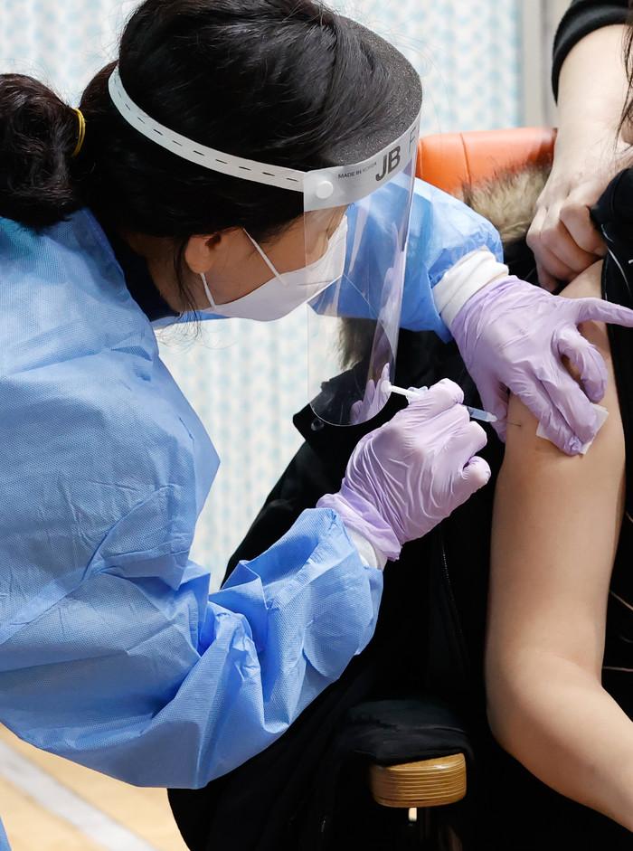대구지역 찾아가는 학교 단위 백신 접종이 처음 시작된 16일 오전 대구의 한 학교에서 학생들이 코로나19 백신을 맞고 있다.
