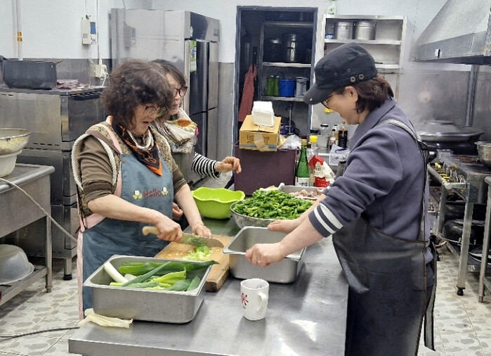 | ▲ 교회 봉사자들이 반찬을 만드는 모습.(사진= 서대문구청 제공) |