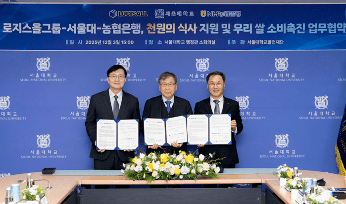 [시민일보 = 문민호 기자] NH농협은행(은행장 강태영)은 지난 3일 대한민국 대표 스마트 물류기업인 로지스올그룹(회장 서병륜)과 함께 서울대학교 학생들의 건강한 일상을 위한 '천원의 아침식사' 지원 업무협약을 체결했다고 4일 밝혔다.