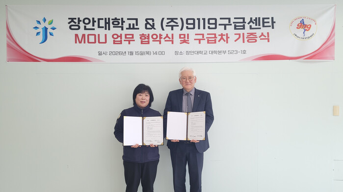 2026년 화성시 최초로 지역 내 신설되는 장안대학교(총장 이종진) 응급구조학과의 발전과 EMS의 미래 발전을 위한 장이 되고자 장안대학교(응급구조학과)와 ㈜9119구급센타(대표 이순홍)가 업무협약(MOU)을 체결했다.