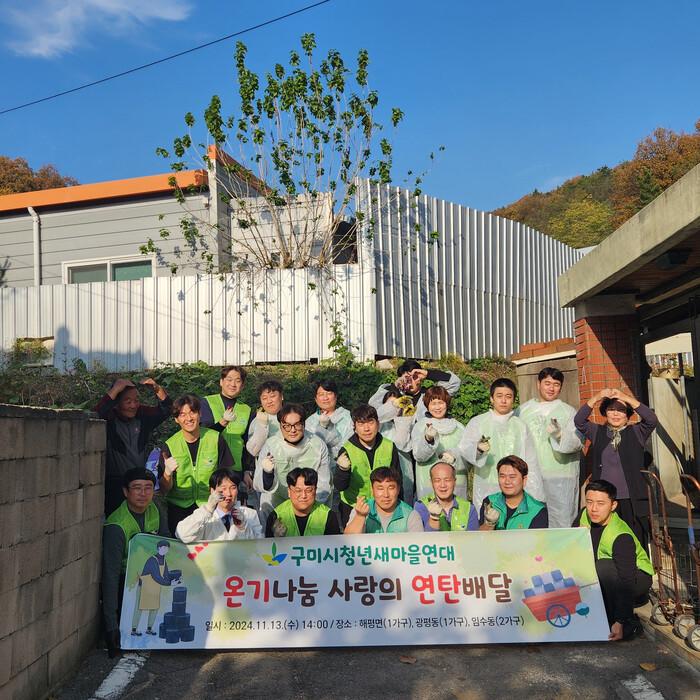 [구미=박병상 기자] 경북 구미시에서는 청년새마을연대가 주관해 13일 임수동에서 ‘사랑의 연탄 나눔’ 행사를 열어 지역사회 소외 이웃들에게 따뜻한 온정을 전했다.