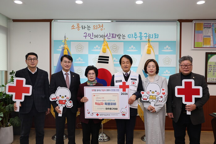 전달식은 장규철 부의장을 비롯한 상임위원장들과 조의영 대한적십자사 인천지사 회장 및 조혜정 적십자봉사회 미추홀지구협의회 회장과 관계 임원들이 참석한 가운데 진행됐다.