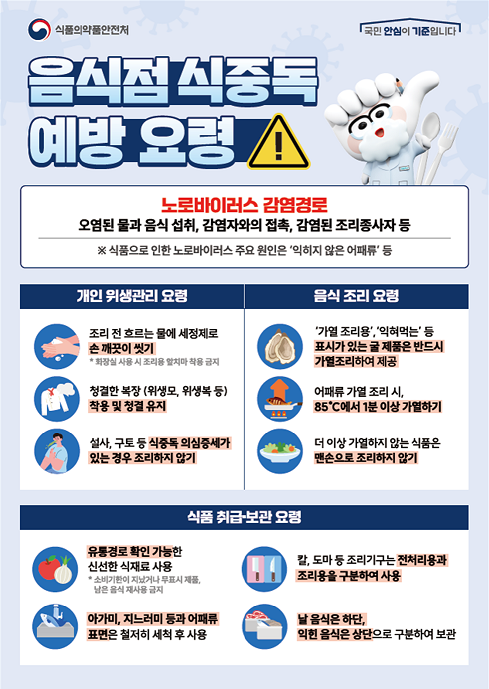 노로바이러스는 영하의 기온에서도 생존하며, 특히 어패류를 통해 감염되는 사례가 많아 수산물 취급 업소의 집중 관리가 필수적이다.