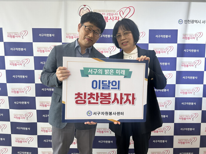 [인천=문찬식 기자] 인천 서구자원봉사센터는 지역사회 발전을 위해 여러 분야에서 다양한 봉사활동에 참여한 자원봉사자를 격려하고 자원봉사 문화를 확산하기 위한 ‘자원봉사 칭찬릴레이’를 매월 실시하고 있다.