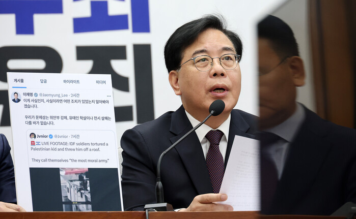 이에 대해 이스라엘 정부가 반발하면서 외교 분쟁 조짐을 보이는 데 대해서는 “가짜뉴스를 SNS에 올렸다가 타국 정부로부터 규탄 발언을 들은 것은 대한민국 외교사의 한 획을 그을 그야말로 역대급 외교 대참사가 아닐 수 없다”며 “게시물과 관련해 국민이 묻는 것은 ‘보편적 인권’의 가치가 아니라 ‘어떻게 대통령 SNS에 가짜 뉴스 영상이 공유됐느냐는 점’”이라고 지적했다.
