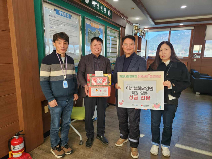 김영환 송악면장은 “어려운 여건 속에서도 나눔을 실천해 주신 아산설화요양원 윤해진 원장님과 직원 여러분께 깊이 감사드린다”며 “전달된 성금은 도움이 필요한 이웃들에게 소중히 전달하겠다”고 말했다.