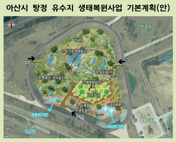 사업 대상지는 탕정지구 도시개발로 조성된 유수지다. 약 1만4492㎡의 전체 면적 중 8700㎡가 생태복원 구역으로 편입된다.
