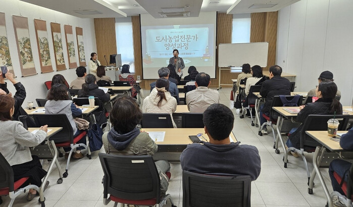 농업기술센터에서 추진하는 이번 교육은 지난 26일 개강식을 시작으로, 10월 8일까지 이어지는 7개월간의 과정으로 진행되며, 국가 자격인 ‘도시농업관리사’ 자격증 취득을 희망하는 시민 30명을 위해 마련된 특화 교육 프로그램이다.