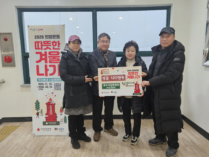 [시민일보 = 박소진 기자] 성동구(구청장 정원오) 성수2가제1동은 지난 23일 동주민센터에서 뚝도시장번영회의 ‘희망온돌 따뜻한 겨울나기’ 성금 기탁식을 개최했다.