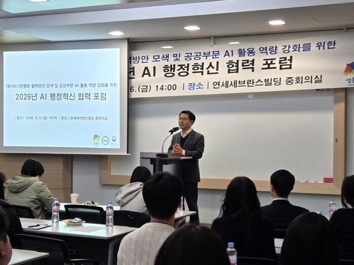 [시민일보 = 박소진 기자] 성동구(구청장 정원오)는 한국지능정보사회진흥원(NIA)과 공동으로 ‘2026년 AI 행정혁신 협력 포럼’을 지난 2월 6일 연세세브란스빌딩 중회의실에서 개최했다.