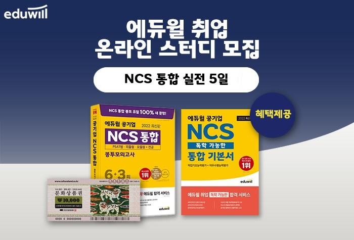 [시민일보 = 여영준 기자] 에듀윌은 2022년 상반기 공기업 취업을 대비하는 취준생들을 위해 'NCS 통합 실전 5일 완성 온라인 스터디' 참여자를 모집한다고 밝혔다.