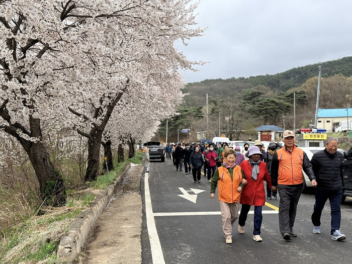 이번 행사는 옥성면체육회 주관으로 지역주민 300여명이 참여한 가운데 진행됐으며, 산촌리 마을회관에서 석거실까지 이어지는 벚꽃길 코스를 따라 걷기 행사가 펼쳐졌다.